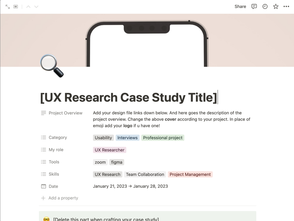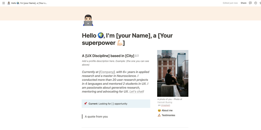UX Researcher Notion Portfolio Template